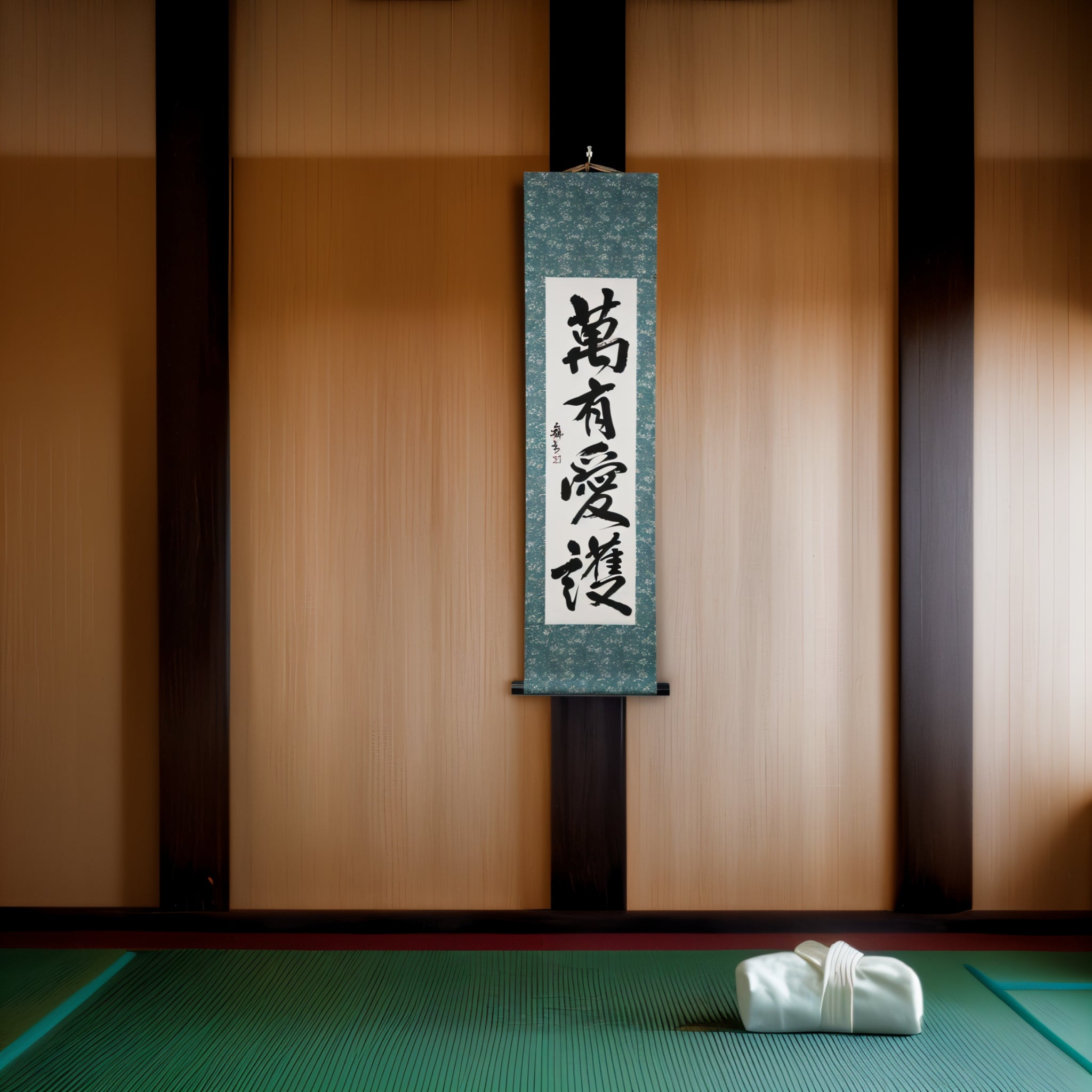 For devoted Aikido practitioners, this scroll serves as a daily reminder of the deeper purpose behind every technique and movement: to cultivate love, protect others, and live in unity with the universe.
