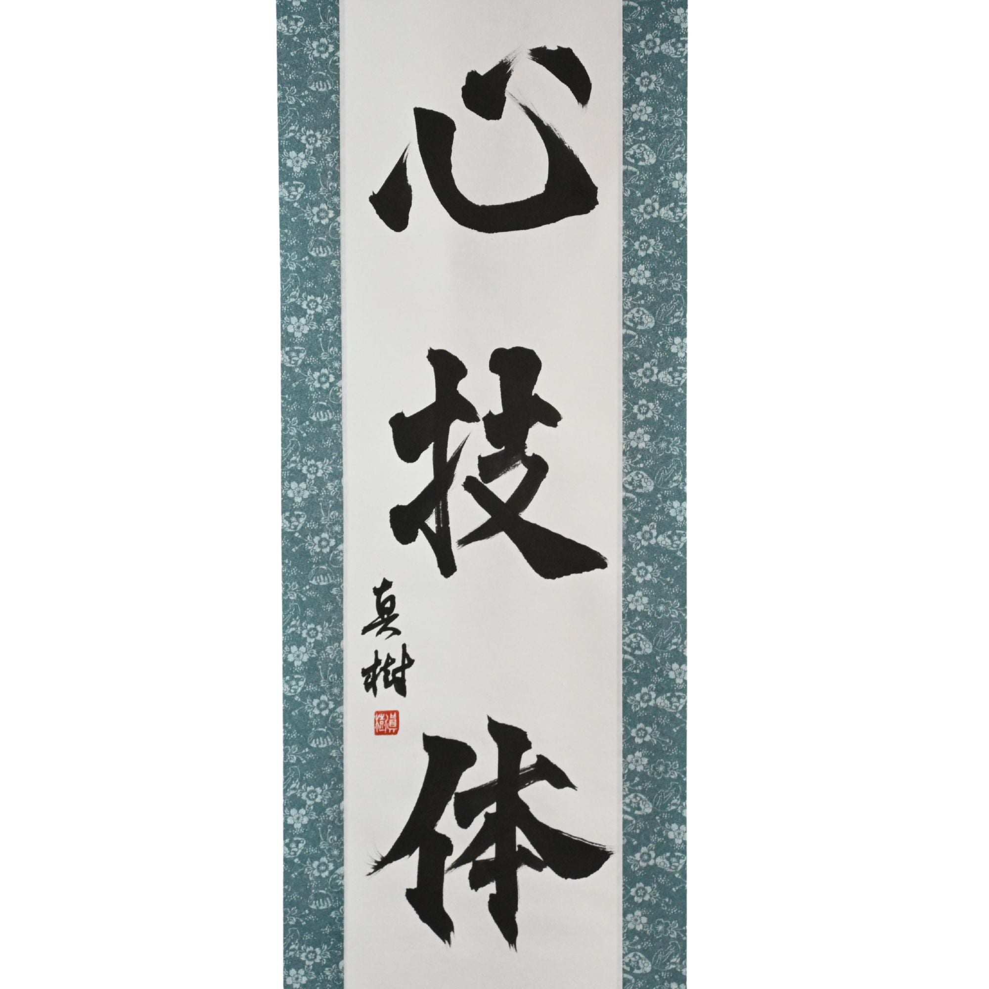 This Japanese calligraphy scroll features the revered phrase 心技体 (Shingitai) — the foundational concept behind all traditional Japanese martial arts, including Judo, Karate, Aikido, and more.